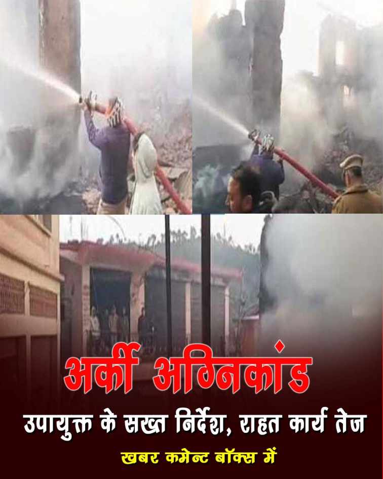 प्राप्त जानकारी के अनुसार आज प्रातः लगभग 02:45 बजे अर्की बाजार के एक पुराने लकड़ी के भवन में अचानक आग लग गई। सूचना मिलते ही जिला प्रशासन हरकत में आया और अर्की, सोलन व शिमला से अग्निशमन वाहनों को तुरंत मौके पर भेजा गया। अम्बुजा सीमेंट कंपनी की फायर यूनिट ने भी राहत कार्य में सहयोग किया।