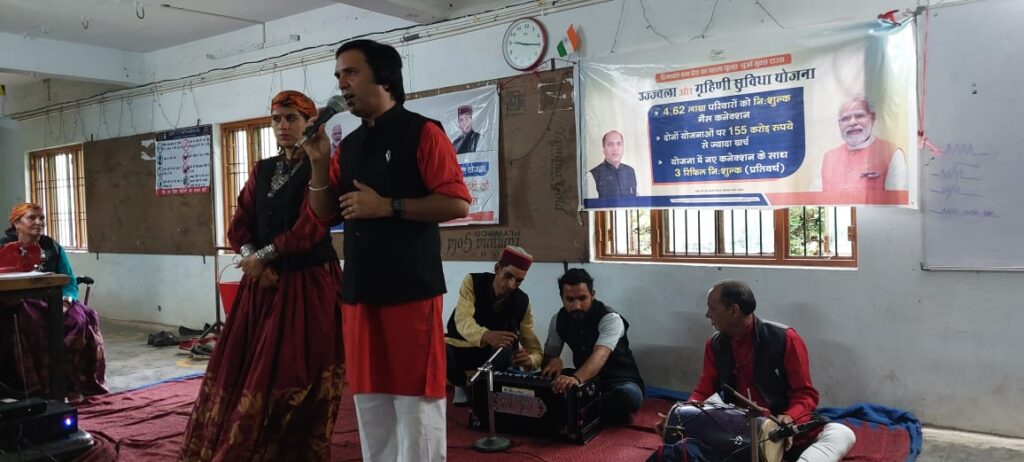 सूचना एवं जन सम्पर्क विभाग के तत्वाधान में विशेष प्रचार अभियान के तहत अक्षिता लोक सांस्कृतिक दल, हिम सांस्कृतिक दल ममलीग तथा शिव शक्ति कला मंच के कलाकारों ने विभिन्न ग्राम पंचायतों में प्रदेश सरकार द्वारा अनुसूचित जाति के कल्याणार्थ चलाई जा रही योजनाओं व जन कल्याण के लिए आरम्भ की गई नीतियों, कार्यक्रमों, उपलब्धियों और विभिन्न योजनाओं के बारे ग्रामीणों को जागरूक किया।