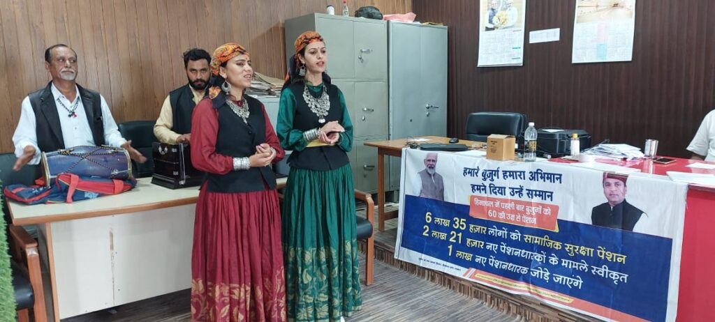 कलाकारों ने ग्रामीणों को अनुसूचिजाति के लिए विभिन्न योजनाओं के बारे में जागरूक किया। कलाकारों ने बताया कि प्रदेश सरकार ने सामाजिक सुरक्षा क्षेत्र को विशेष महत्व प्रदान किया है। हाल ही में मुख्यमंत्री जयराम ठाकुर द्वारा प्रस्तुत बजट में वृद्धावस्था पेंशन के लिए आयु सीमा सभी के लिए कम करके 60 वर्ष कर दी गई है। लोगों को जानकारी दी गई कि प्रदेश सरकार ने इस वर्ष 10 नई योजनाओं को आरम्भ करने की घोषणा की है जिनमें बच्चों, महिलाओं, छात्रों तथा युवाओं के कल्याण को केंद्रित किया गया है।
