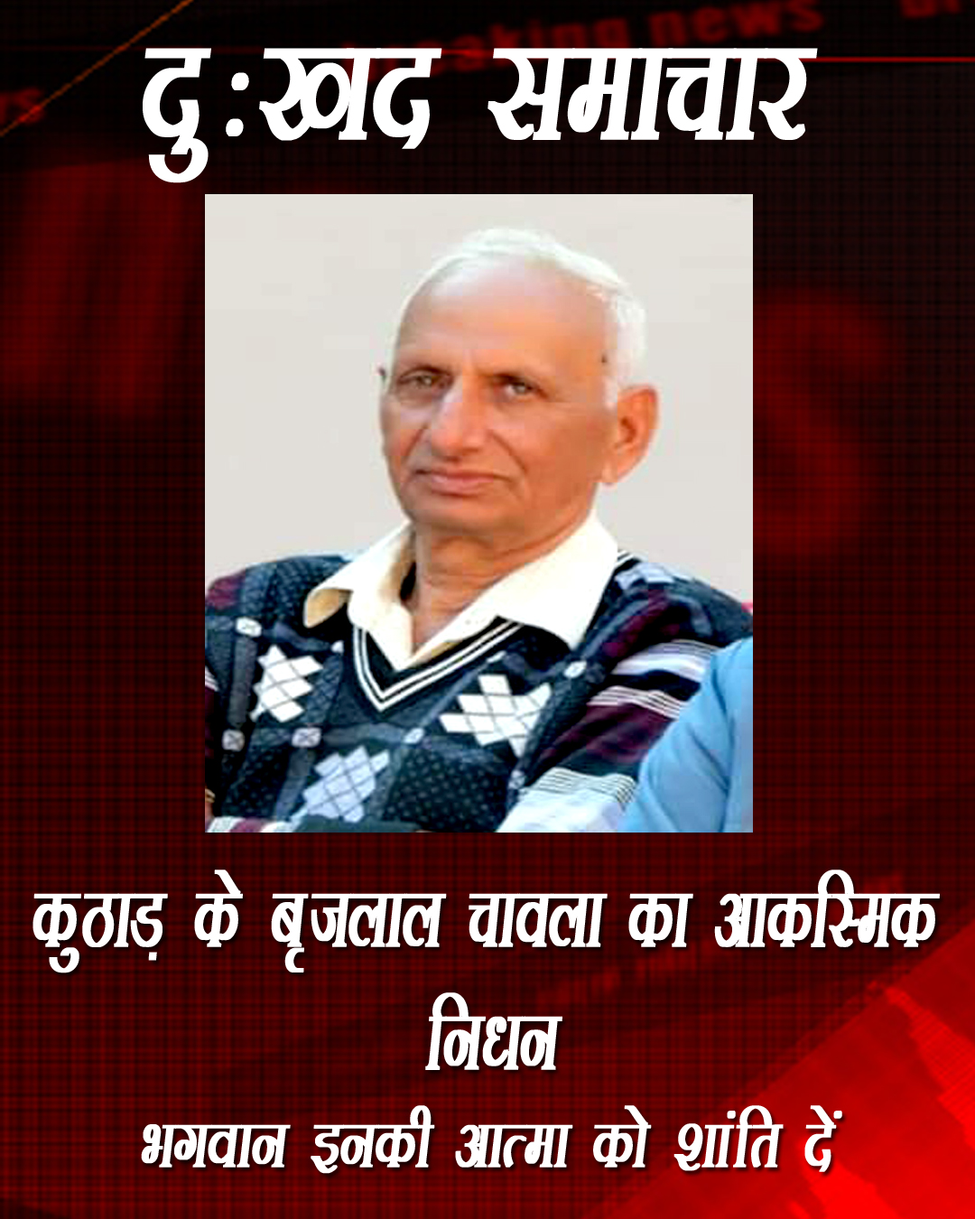 परिजनों के अनुसार, बृजलाल चावला पिछले कुछ समय से अस्वस्थ थे और उनका स्वास्थ्य लगातार गिर रहा था। उनके निधन की सूचना मिलते ही कुठाड़ और आसपास के इलाके में शोक की लहर दौड़ गई।