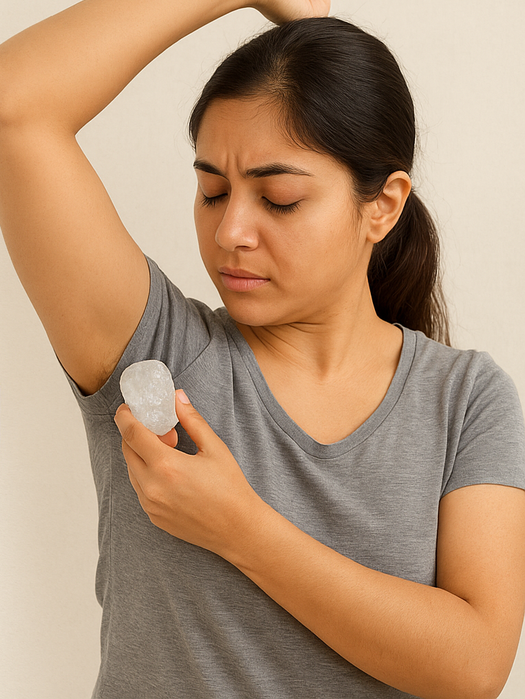 फिटकरी में मौजूद एंटीबैक्टीरियल गुण पसीने से पैदा होने वाले बैक्टीरिया को खत्म करते हैं। यही बैक्टीरिया दुर्गंध का मुख्य कारण होते हैं। इसके अलावा, इसके कसैले (Astringent) गुण त्वचा के रोमछिद्रों को हल्का सिकोड़ देते हैं, जिससे पसीना कम आता है और बदबू की समस्या भी घट जाती है।