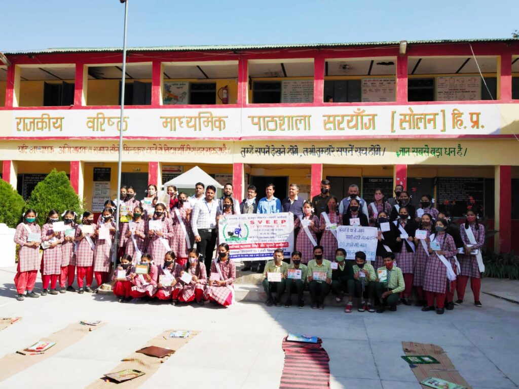 उन्होंने कहा कि 50-अर्की विधानसभा क्षेत्र में 950 से अधिक मतदाताओं वाली संख्या वाले मतदान केन्द्रों के साथ लोगों की सुविधा के लिए सहायक 22 मतदान केन्द्र स्थापित किए गए हैं ताकि कोविड-19 के दृष्टिगत भीड़ एकत्र न हो।इस अवसर पर लोगों से आग्रह किया गया कि सभी कोविड-19 महामारी से बचाव के लिए नियमों का पालन करें। लोगों से आग्रह किया गया कि सार्वजनिक स्थानों पर नाक से ठोडी तक ढकते हुए मास्क पहनें, सोशल डिस्टेन्सिग नियम का पालन करें और बार-बार अपने हाथ साबून अथवा एल्कोहल युक्त सेनिटाईजर से साफ करते रहें।इस अवसर पर विद्यालय के प्रधानाचार्य प्रेम लाल नेगी, स्वीप टीम के पुनीत ठाकुर तथा छात्र-छात्राएं उपस्थित थीं।