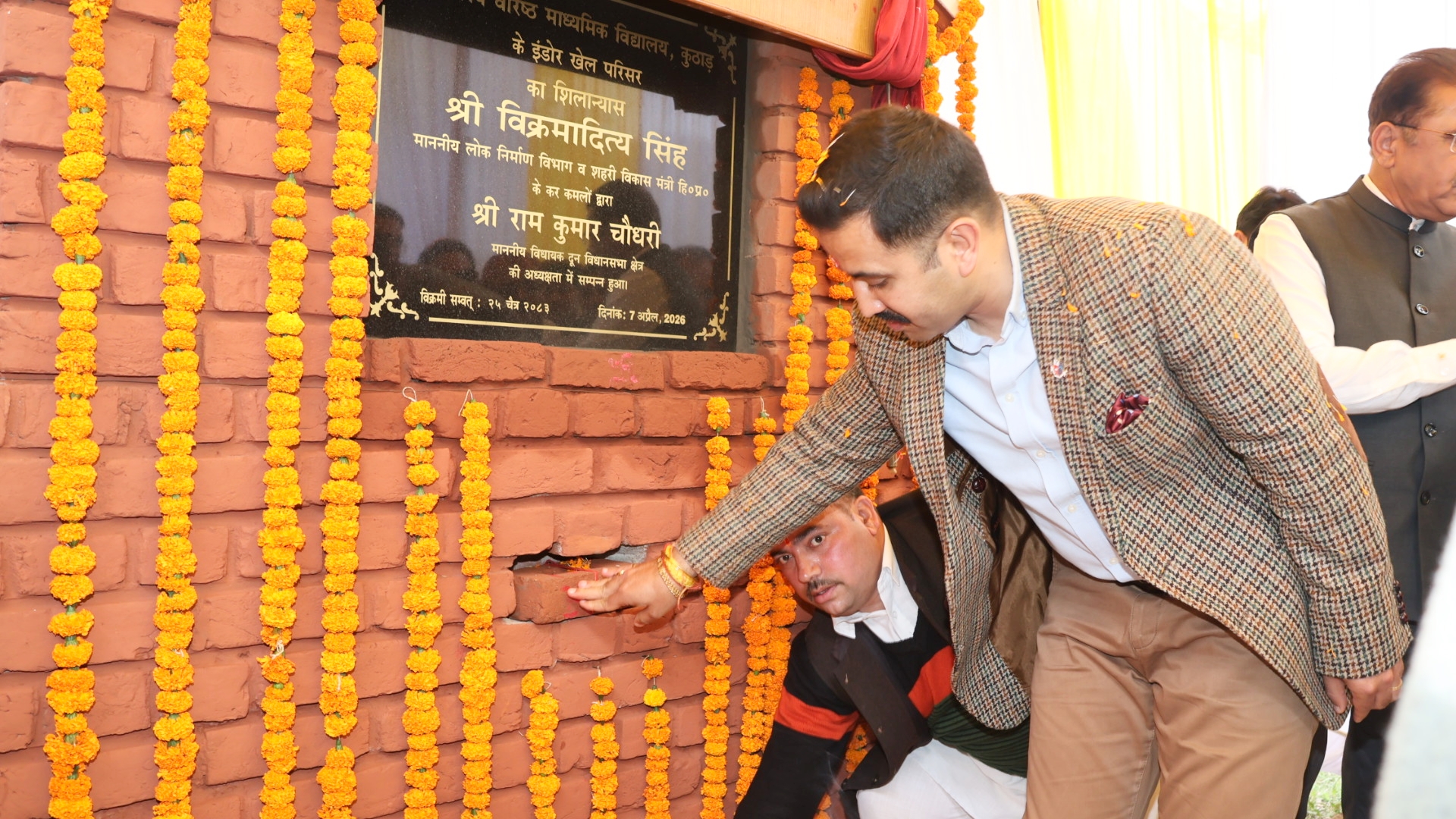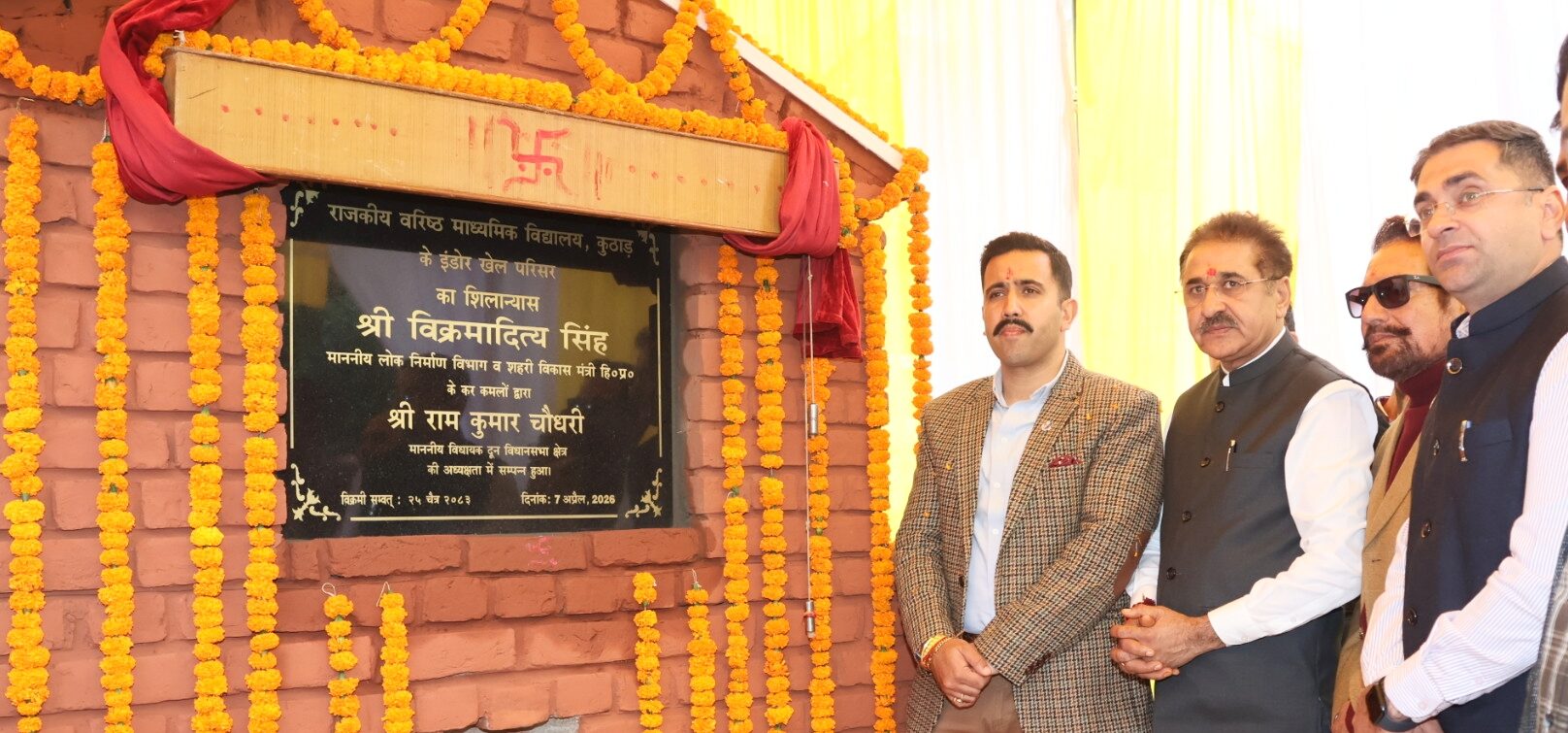 राजीव ख़ामोश , कुठाड़ : जिला सोलन के कसौली उपमंडल के अंतर्गत ग्राम पंचायत कृष्णगढ़ के राजकीय वरिष्ठ माध्यमिक पाठशाला कुठाड़ में आज विकास की एक नई इबारत लिखी गई। लोक निर्माण एवं शहरी विकास मंत्री विक्रमादित्य सिंह ने दून विधानसभा क्षेत्र के विधायक राम कुमार चौधरी की अध्यक्षता में इंडोर स्टेडियम का विधिवत शिलान्यास किया। इस दौरान क्षेत्र में उत्साह का माहौल देखने को मिला और मंत्री का फूल मालाओं व पुष्प गुच्छों से भव्य स्वागत किया गया।