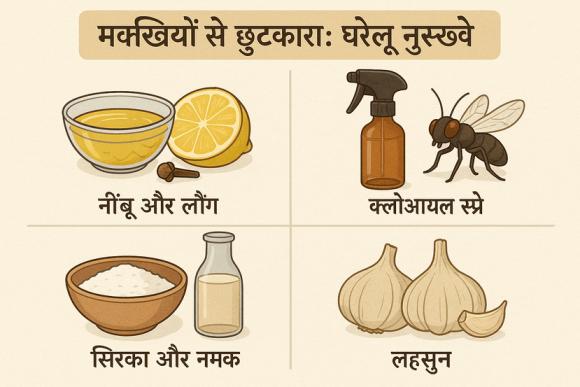 मक्खियों से बचने के लिए घर की साफ-सफाई जरूरी है। खासकर किचन और कचरे को रोज साफ करें। इसके अलावा पुदीने या लेमन ग्रास का पौधा लगाने से भी मक्खियां दूर रहती हैं।