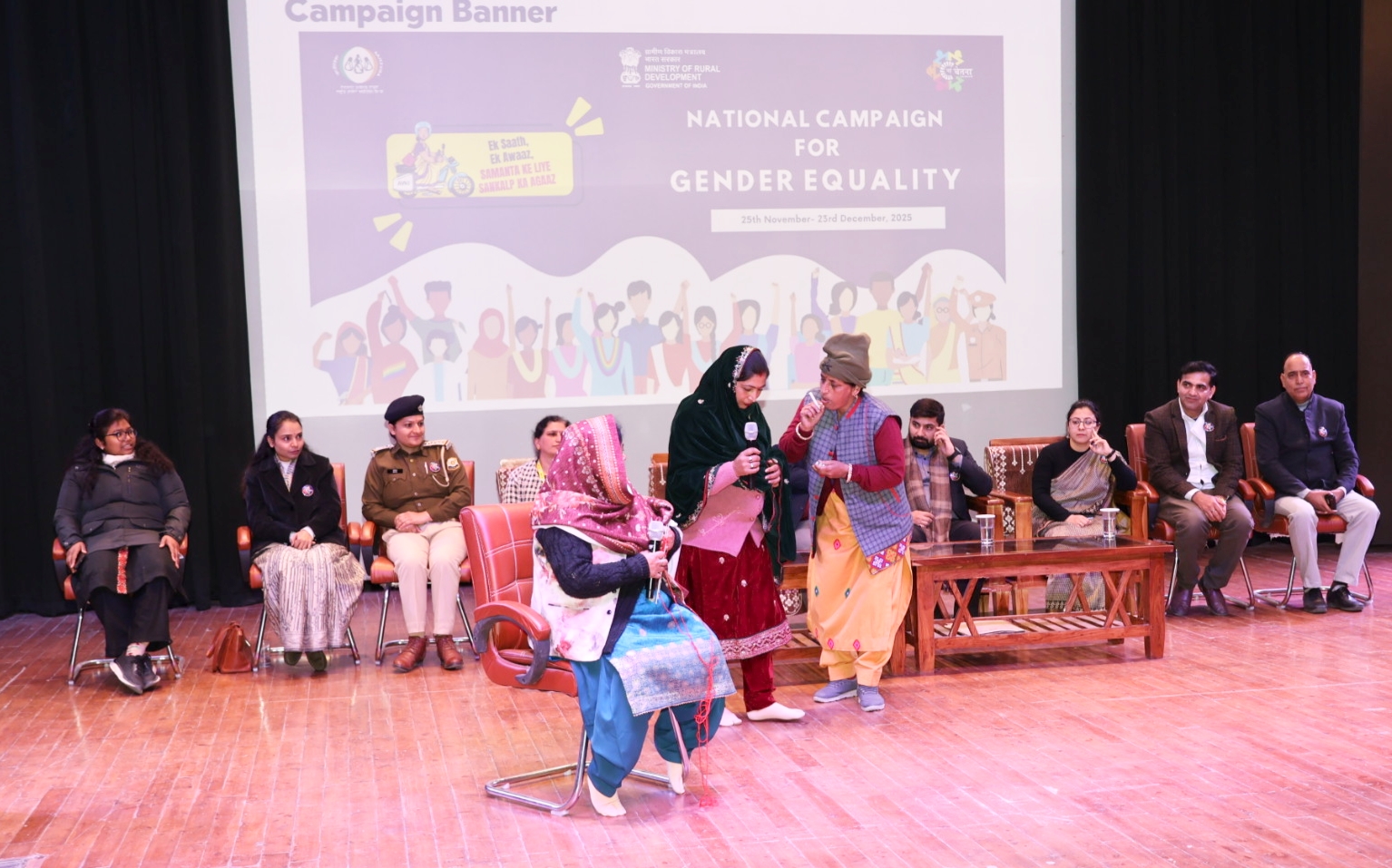 हिमाचल प्रदेश राज्य ग्रामीण आजीविका मिशन के मुख्य कार्यकारी अधिकारी ओम प्रकाश शर्मा ने मुख्यातिथि का स्वागत किया तथा लैंगिक अभियान के बारे में जानकारी प्रदान की।इस अवसर पर महिला हिंसा उन्मूलन के बारे में शपथ भी दिलाई गई।