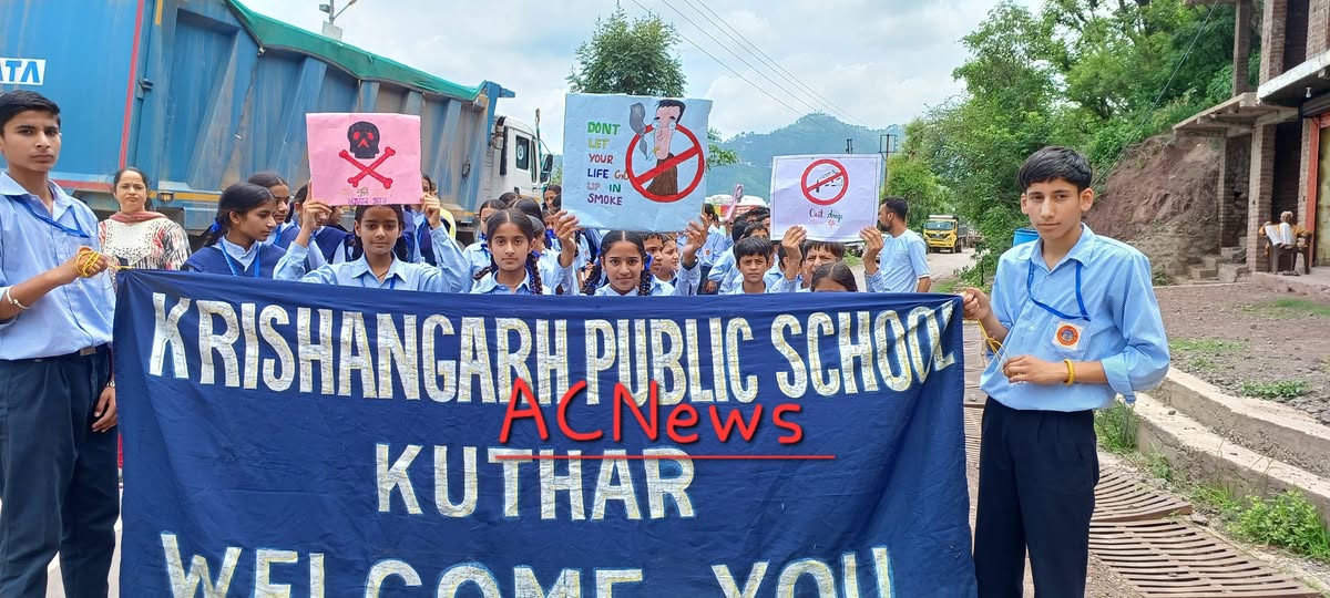 राजीव (कुठाड़) : जिला सोलन के कसौली उपमंडल के अंतर्गत ग्राम पंचायत कृष्णगढ़ कुठाड़ में कृष्णगढ़ पब्लिक स्कूल के बच्चों ने वीरवार की सुबह एक जागरूकता रैली का आयोजन किया जिसमें बच्चों ने स्कूल परिसर से लेकर कुठाड़ बस स्टैंड की मार्किट तक नशे के खिलाफ अलख जगाते हुए नारों के माध्यम से जनता को जागरूक करने का प्रयास किया इस जागरूकता रैली में इन बच्चों के साथ कृष्णगढ़ पब्लिक स्कूल का अध्यापक वर्ग भी साथ था।
